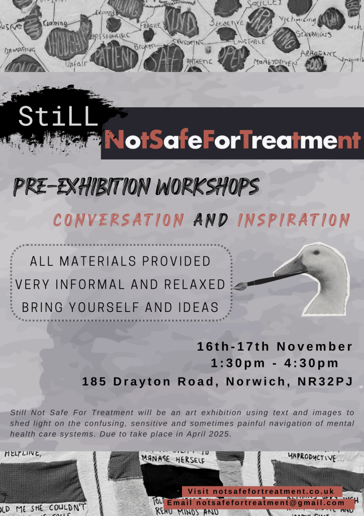 This weekend marked a crucial milestone for us in terms of widening our scope and the people that found making artwork about their experience beneficial. People who attended said that they felt comfortable and safe creating artwork with others who may have had similar experiences. They enjoyed making work and hoped that the public who came to view the exhibition might gain some more understanding of the mental health system. We could see a three-fold benefit when facilitating the workshops.